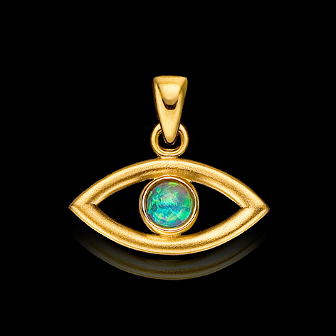 Dieser einzigartige Glücksbringer besteht aus einem goldenen Auge und enthält einenschimmernden, glänzenden Opal Stein in der Mitte. Dieser eine erstaunlicher Anhänger für den Schutz von aller Negativität und gegen den bösen Blick. Das alte Design des AugesSymbolisiert, wie wir Tausende von Jahrenzurückverfolgen und wird bei vielenReligionen als Zeichen des Schutzes verwendet.