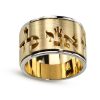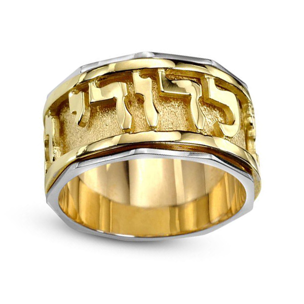 Present your loved one with this amazing two-tone gold band of love. Words of love are engraved by hand to reveal a layer of textured gold below. The words are the phrase from King Solomon’s biblical ode to love and devotion and reads “Ani L’Dodi V’Dodi Li,” meaning, “I belong to my beloved and my beloved belongs to me.” The phrase, an ode to romance, is bordered in sleek white gold. Bestow it on your beloved on any occasion, especially when you want to confirm your special relationship.