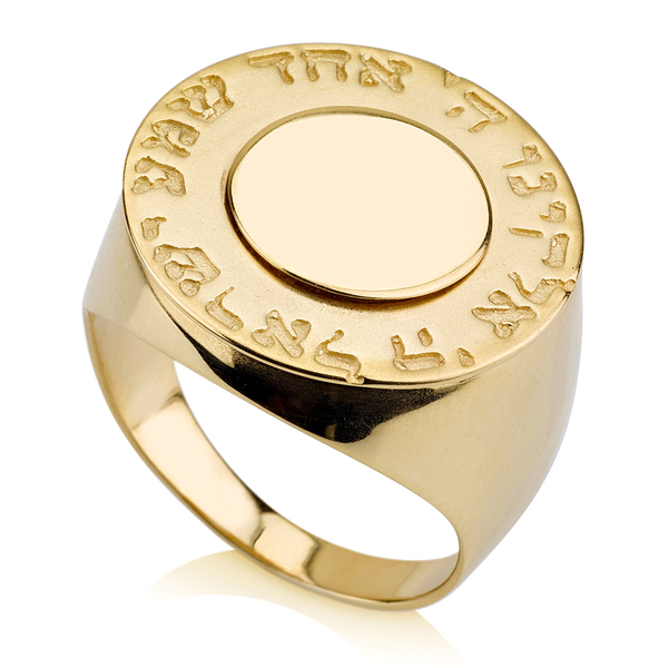 This beautiful ring “Shema Israel” engraved in Hebrew, with the classic statement of the Jewish faith “Shema Yisrael Hashem Elokeinu, Hashem Echad” (Hear O Israel, Hashem is our Gd, Hashem is one.)