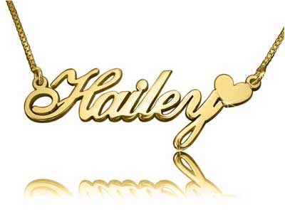 Le cœur se trouve à côté du nom et ajoute une jolie touche à ce beau collier ! La fonte Classic Cursive convient aussi parfaitement aux noms courts.