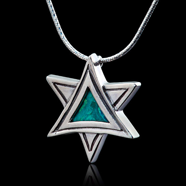 Beautiful hand crafted Star of David Pendant set with Eilat Stone- King Solomon Stone.