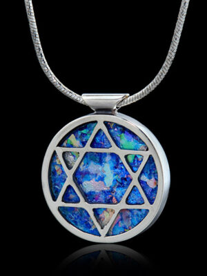 Set with three ruby gems this beautiful ring is delicately carved with images of leaves and pomegranates. It is made of silver and 9 K gold. This one-of-a-kind ring is engraved of the song Woman of Valor (Eshet Chayil): “She opens her mouth with wisdom and a lesson of kindness is on her tongue“.