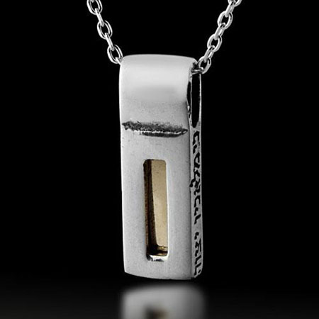 The pendant is also inscribed with two of the 72 names of G-d. Mem Hay Shin (for healing) and Samech Aleph Lamed (for prosperity).