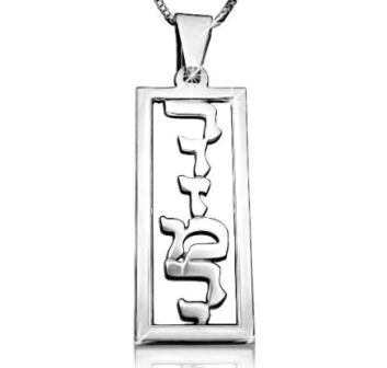 Das hebräische Schriftzug Halskette ist in unseren aufgerüsteten, 1,2 mm doppelte Dicke massivem Sterling-Silber gefertigt. Die einzigartige rechteckige Form Maßnahmen 1.3cm breit und 3.4cm hoch.
