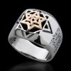 Deze uitzonderlijke Kabbalah-ring is gemaakt van zuiver zilver en 9K goud. De ring is prachtig ingezet met een Turkoois. Het zilveren gedeelte is in het Hebreeuws gegraveerd met het woord Maccabbi. In het Hebreeuws betekent het woord Maccabbi ook een deel van een vers dat de God van Israël looft: “Wie onder de goden is uw gelijke, HEER?” (Exodus 15: 11). De Kabbalah ring is ook gegraveerd met één van de 72 Namen van God: Samech-Alef-Lamed. Van de combinatie Samech-Alef-Lamed wordt gedacht dat deze een deugd is voor overvloed en succes.