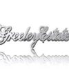 Standaard formaat naamhanger: hoofdletter 1,1 cm lang, lengte van kleine letters naar proportie.