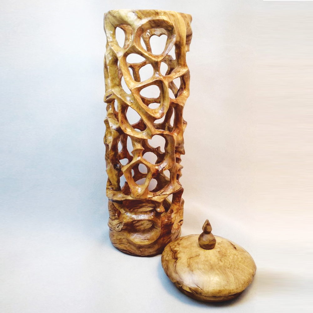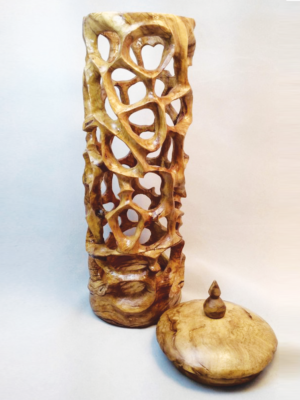 this unique olive wood scroll case is a unique Jewish Judaica art piece.