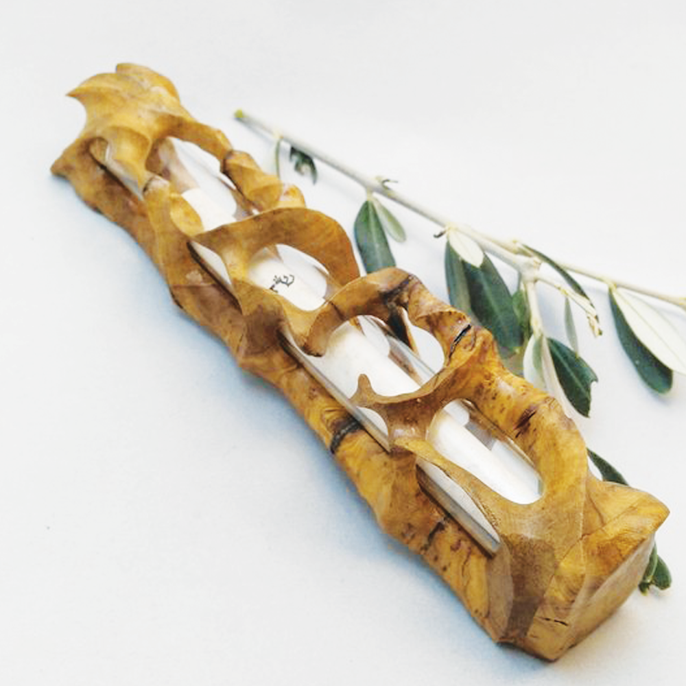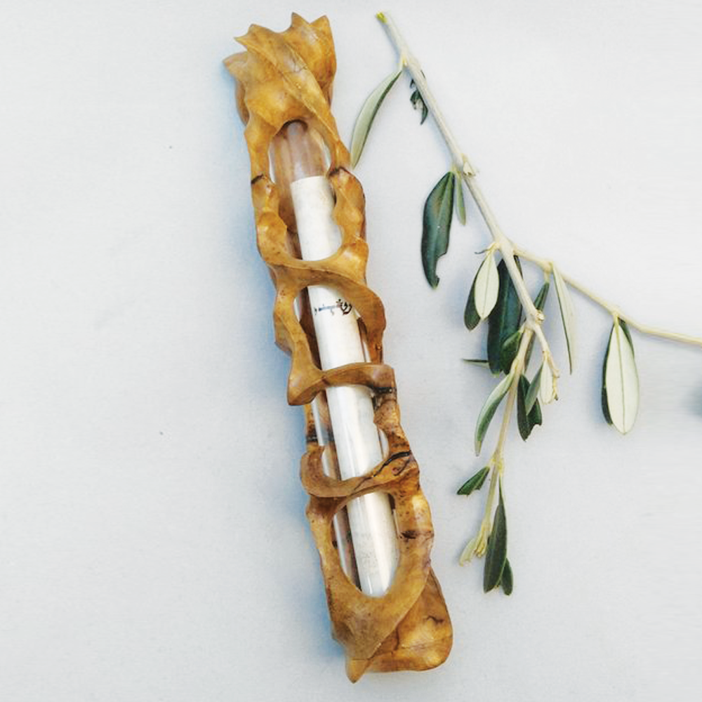Someone says about his mezuzots “its looks like the olive wood grows around the scroll”.